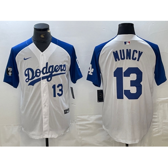 Men's Los Angeles Dodgers #13 Max Muncy Number White Blue Fashion Stitched Cool Base Limited Jersey