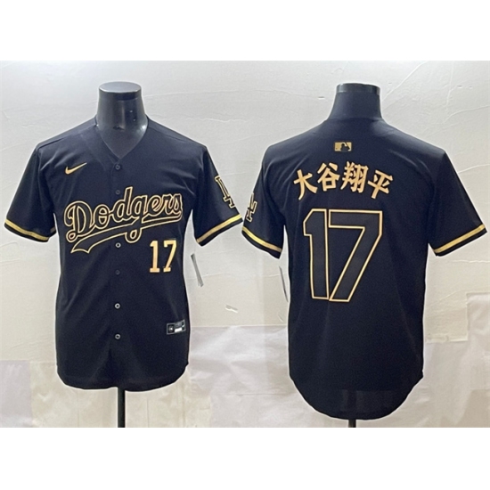 >Men's Los Angeles Dodgers #17 大谷翔平 Black Gold Limited Stitched Jersey