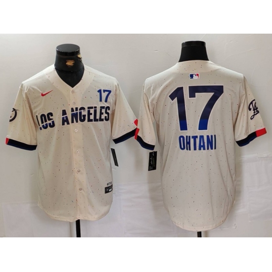 >Men's Los Angeles Dodgers #17 Shohei Ohtani Cream 2024 City Connect Limited Jersey
