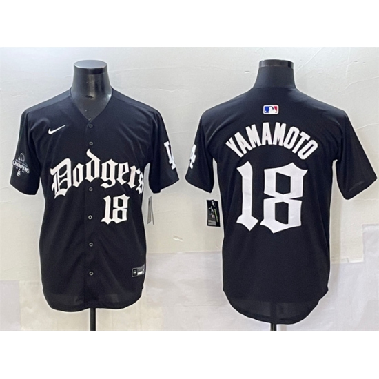 Men's Los Angeles Dodgers #18 Yoshinobu Yamamoto Black 2025 LA Gothic Style With 2024 World Series Champions Vapor Premier Limited Stitched Baseball Jersey