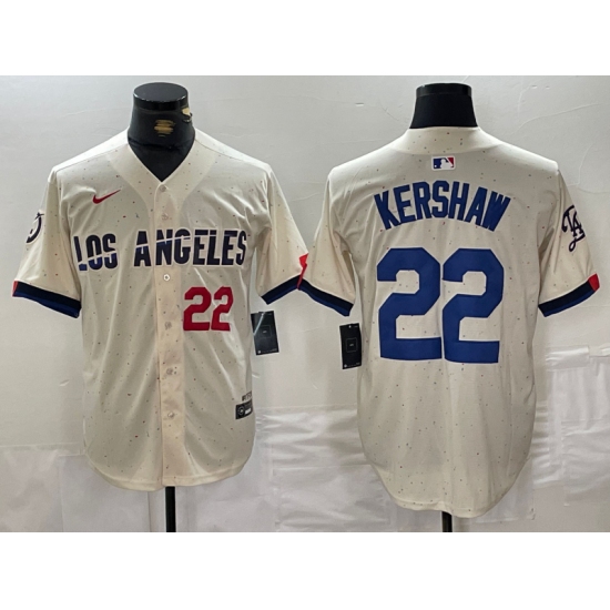 Men's Los Angeles Dodgers #22 Clayton Kershaw Number Cream 2024 City Connect Limited Stitched Jerseys