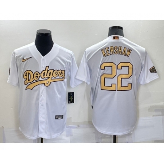 >Men's Los Angeles Dodgers #22 Clayton Kershaw White 2022 All Star Stitched Cool Base Nike Jersey
