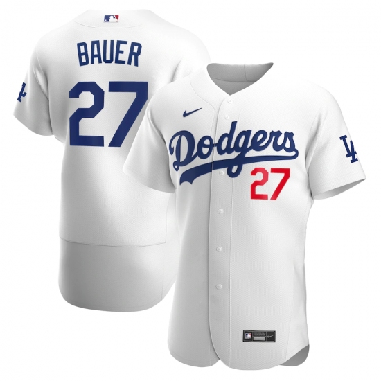 >Men's Los Angeles Dodgers #27 Trevor Bauer White Nike Home Alternate Official Replica Player Jersey