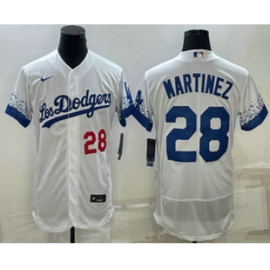 Men's Los Angeles Dodgers #28 JD Martinez Number White 2022 City Connect Flex Base Stitched Jersey