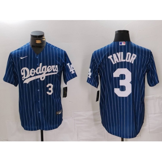 >Men's Los Angeles Dodgers #3 Chris Taylor Navy Pinstripe Stitched Cool Base Nike Jerseys