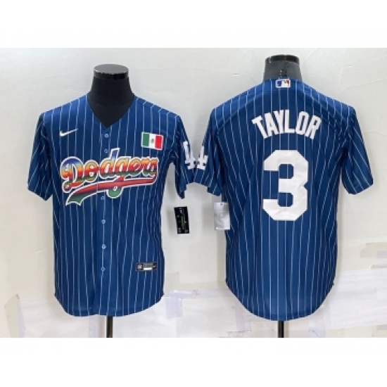 >Men's Los Angeles Dodgers #3 Chris Taylor Rainbow Blue Red Pinstripe Mexico Cool Base Nike Jersey