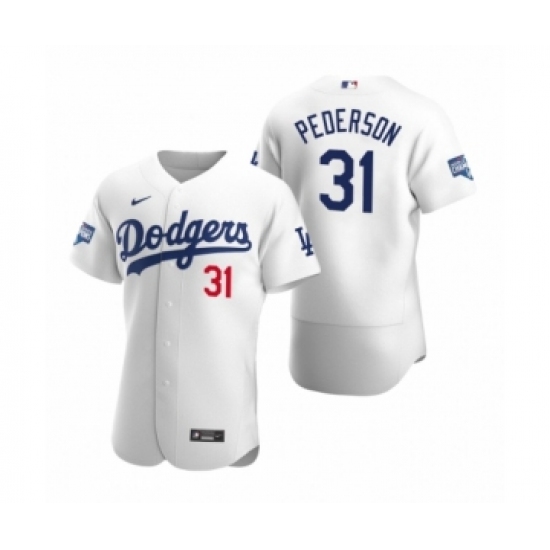 Men's Los Angeles Dodgers #31 Joc Pederson White 2020 World Series Champions Authentic Jersey