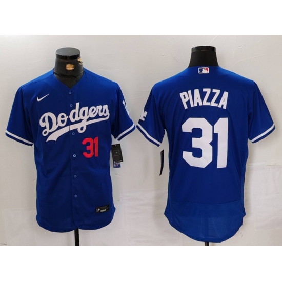 Men's Los Angeles Dodgers #31 Mike Piazza Number Blue Flex Base Stitched Baseball Jersey