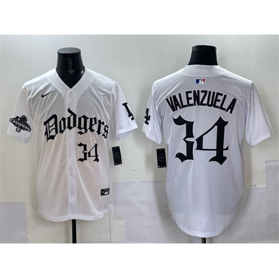>Men's Los Angeles Dodgers #34 Fernando Valenzuela White 2025 LA Gothic Style With 2024 World Series Champions Vapor Premier Limited Stitched Baseball Jerse