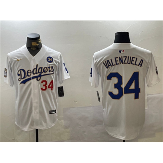 Mens Los Angeles Dodgers #34 Toro Valenzuela White Gold 2024 World Series With Fernando Memorial Limited Stitched Baseball Jersey