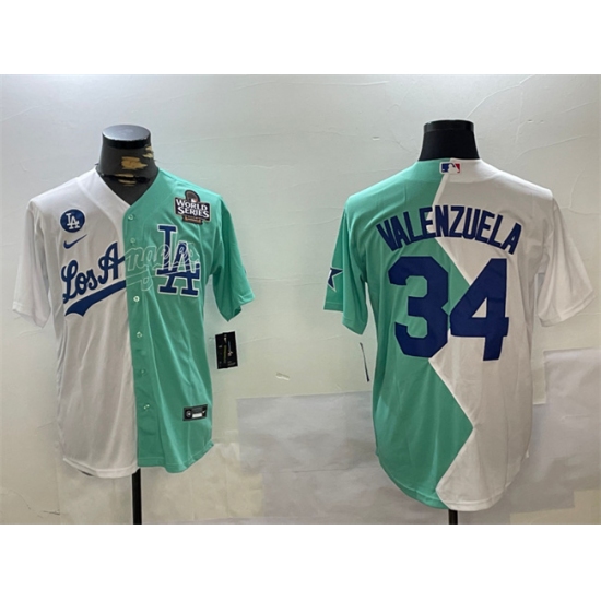Men's Los Angeles Dodgers #34 Toro Valenzuela White Green Split 2024 World Series All-Star Cool Base Stitched Baseball Jersey