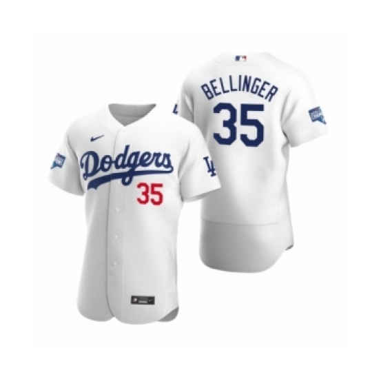 >Men's Los Angeles Dodgers #35 Cody Bellinger White 2020 World Series Champions Authentic Jersey