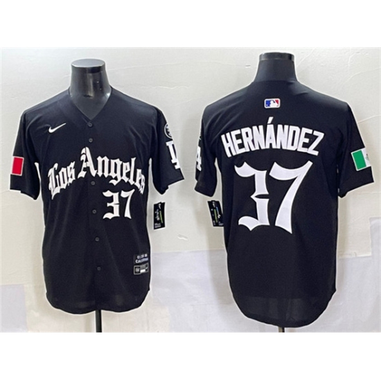 >Men's Los Angeles Dodgers #37 Teoscar Hernández Black 2025 LA Gothic Style With Fernando Patch Vapor Premier Limited Stitched Baseball Jersey