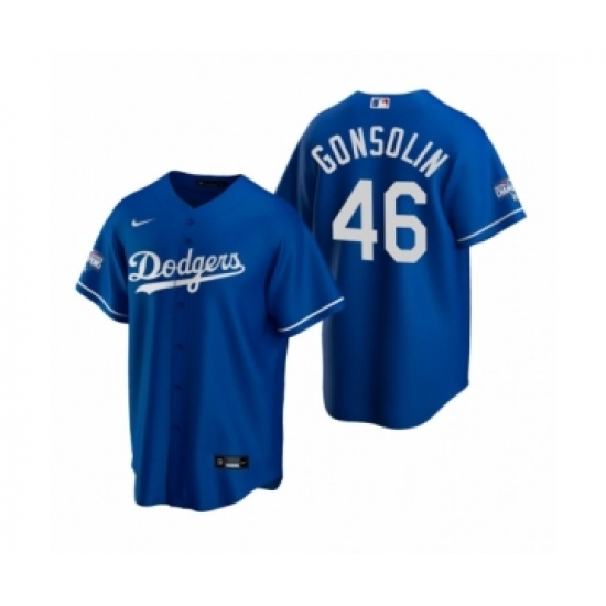 Men's Los Angeles Dodgers #46 Tony Gonsolin Royal 2020 World Series Champions Replica Jersey