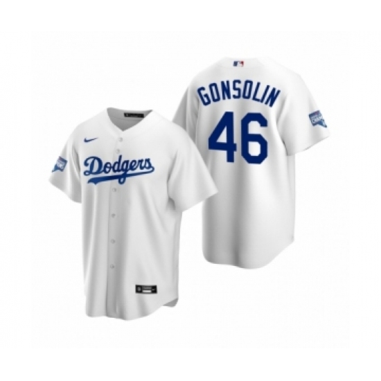 Men's Los Angeles Dodgers #46 Tony Gonsolin White 2020 World Series Replica Jersey