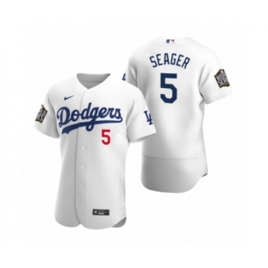 Men's Los Angeles Dodgers #5 Corey Seager Nike White 2020 World Series Authentic Jersey