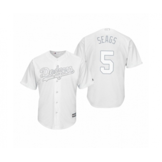 >Men's Los Angeles Dodgers #5 Corey Seager Seags White 2019 Players Weekend Replica Jersey