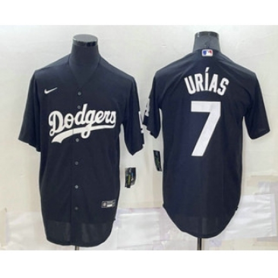 >Men's Los Angeles Dodgers #7 Julio Urias Black Turn Back The Clock Stitched Cool Base Jersey