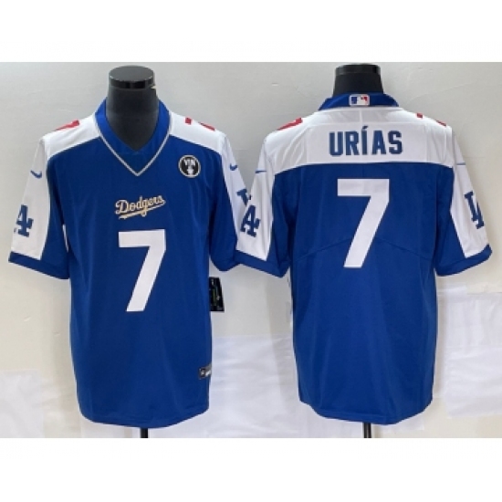 >Men's Los Angeles Dodgers #7 Julio Urias Blue Vin Scully Pullover Stitched Jersey