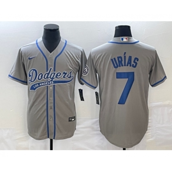Men's Los Angeles Dodgers #7 Julio Urias Grey Cool Base Stitched Baseball Jersey1