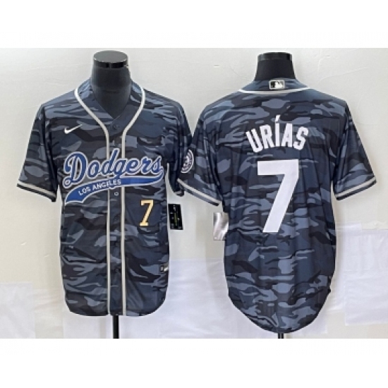 Men's Los Angeles Dodgers #7 Julio Urias Number Gray Camo Cool Base Stitched Baseball Jersey