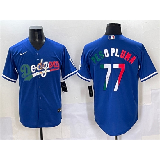 Men's Los Angeles Dodgers #77 Peso Pluma Blue Mexico Stitched Jersey