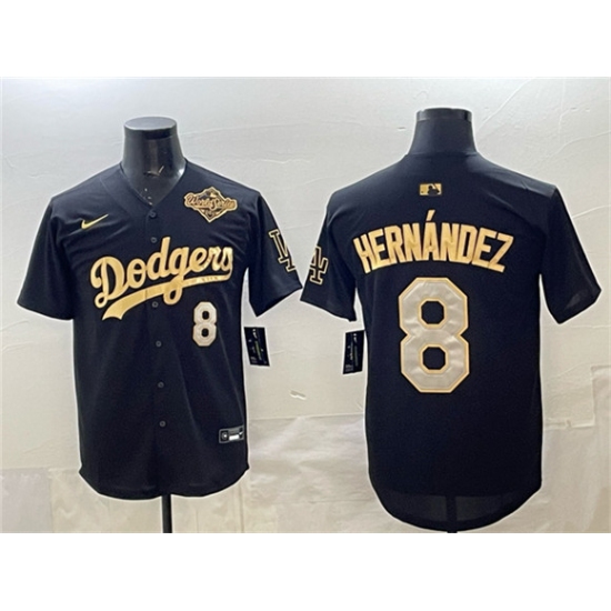 >Men's Los Angeles Dodgers #8 Enrique Hernández Black Gold 2025 World Series Limited Stitched Baseball Jersey