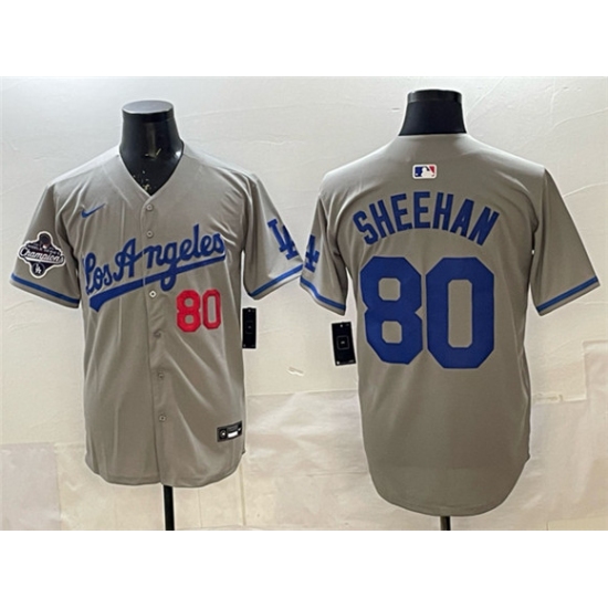 >Men's Los Angeles Dodgers #80 Emmet Sheehan Gray 2025 World Series Champions Limited Stitched Baseball Jersey