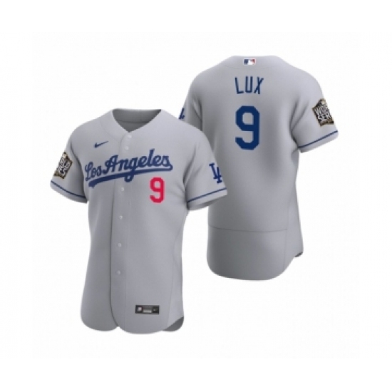 Men's Los Angeles Dodgers #9 Gavin Lux Gray 2020 World Series Champions Road Authentic Jersey