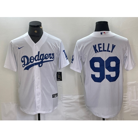 >Men's Los Angeles Dodgers #99 Joe Kelly White Stitched Cool Base Nike Jerseys