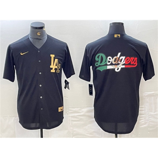 Men's Los Angeles Dodgers Team Big Logo Black Cool Base Stitched Baseball Jersey1