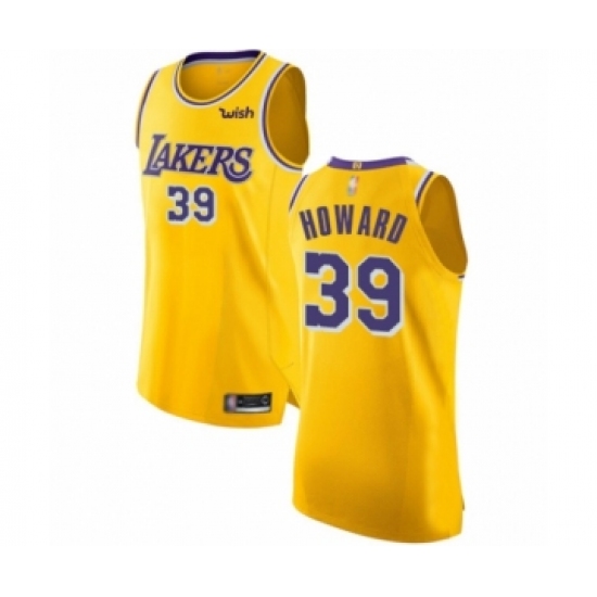 Men's Los Angeles Lakers #39 Dwight Howard Authentic Gold Basketball Jersey - Icon Edition