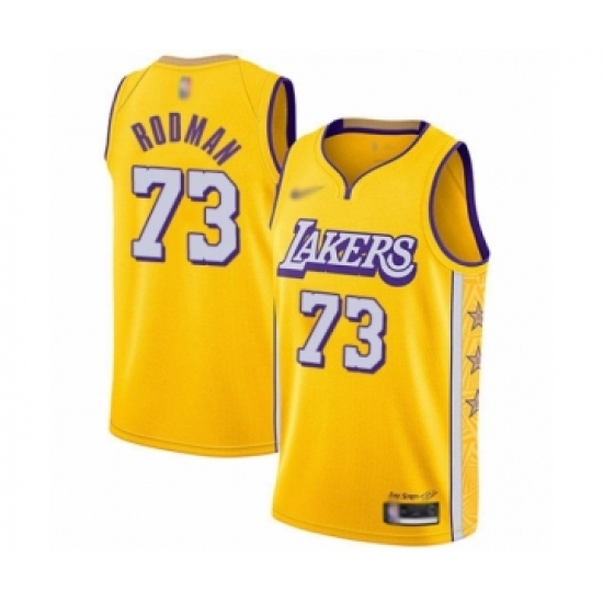 Men's Los Angeles Lakers #73 Dennis Rodman Swingman Gold 2019-20 City Edition Basketball Jersey