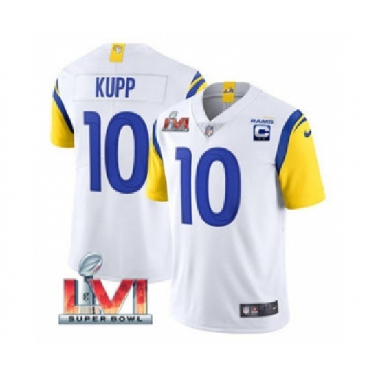Men's Los Angeles Rams #10 Cooper Kupp 2022 White With C Patch Super Bowl LVI Vapor Limited Jersey