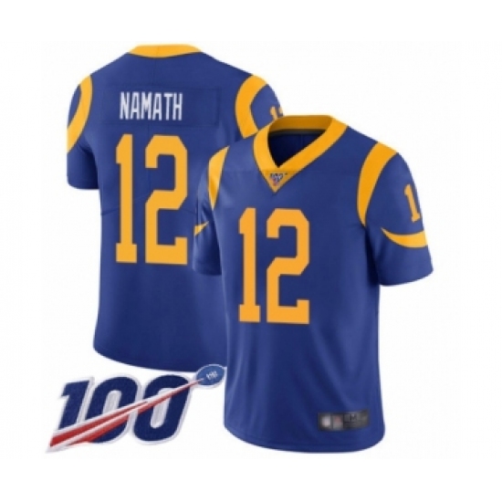 Men's Los Angeles Rams #12 Joe Namath Royal Blue Alternate Vapor Untouchable Limited Player 100th Season Football Jersey