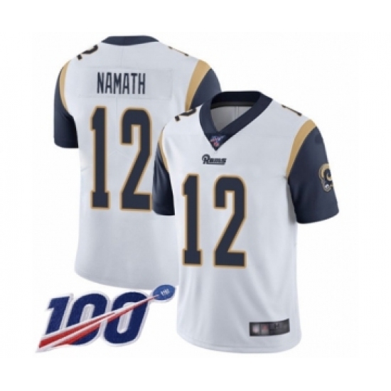 Men's Los Angeles Rams #12 Joe Namath White Vapor Untouchable Limited Player 100th Season Football Jersey
