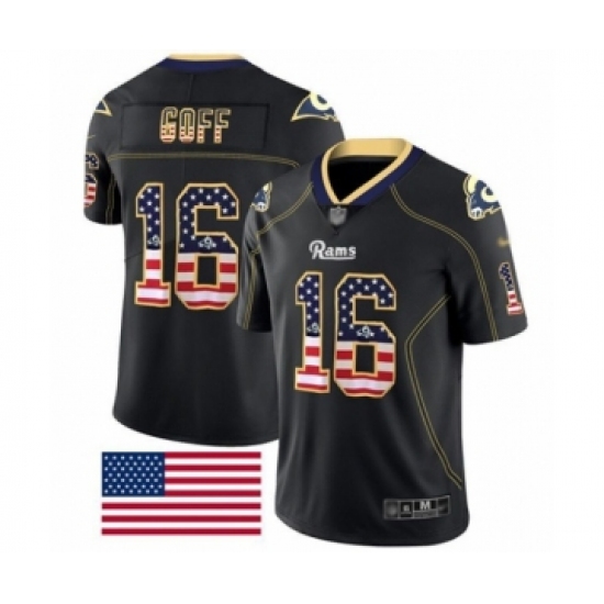 Men's Los Angeles Rams #16 Jared Goff Limited Black Rush USA Flag Football Jersey