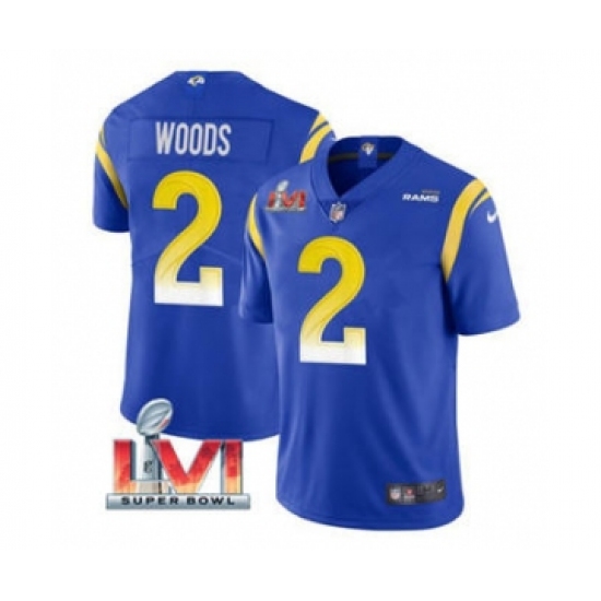 Men's Los Angeles Rams #2 Robert Woods Royal 2022 Super Bowl LVI Vapor Limited Stitched Jersey