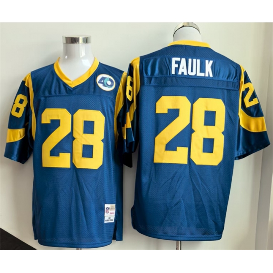 Men's Los Angeles Rams #28 Marshall Faulk Royal Throwback Football Stitched Jersey