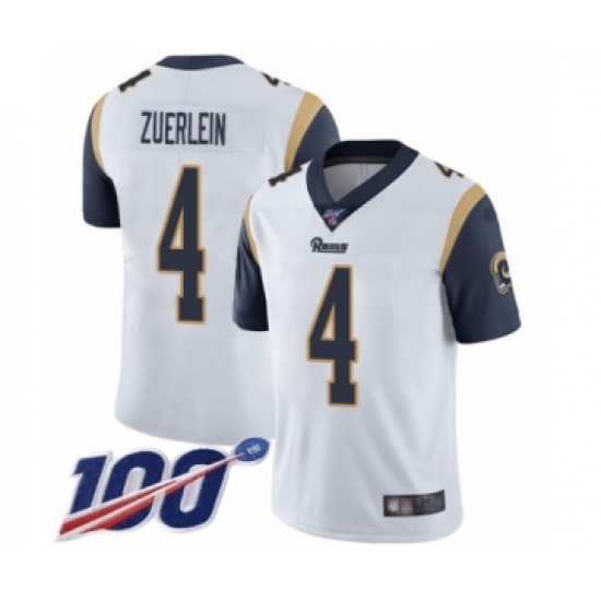 Men's Los Angeles Rams #4 Greg Zuerlein White Vapor Untouchable Limited Player 100th Season Football Jersey