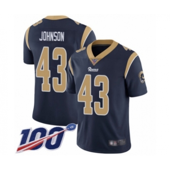 >Men's Los Angeles Rams #43 John Johnson Navy Blue Team Color Vapor Untouchable Limited Player 100th Season Football Jersey
