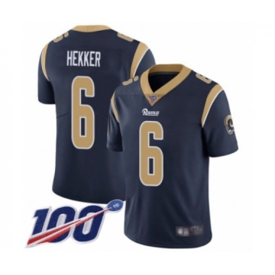 >Men's Los Angeles Rams #6 Johnny Hekker Navy Blue Team Color Vapor Untouchable Limited Player 100th Season Football Jersey