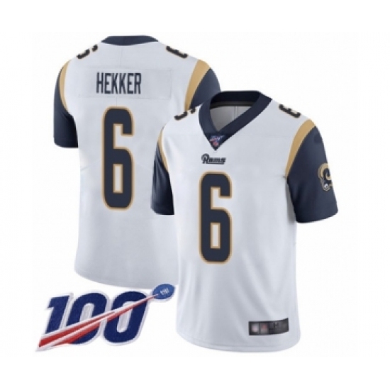 Men's Los Angeles Rams #6 Johnny Hekker White Vapor Untouchable Limited Player 100th Season Football Jersey