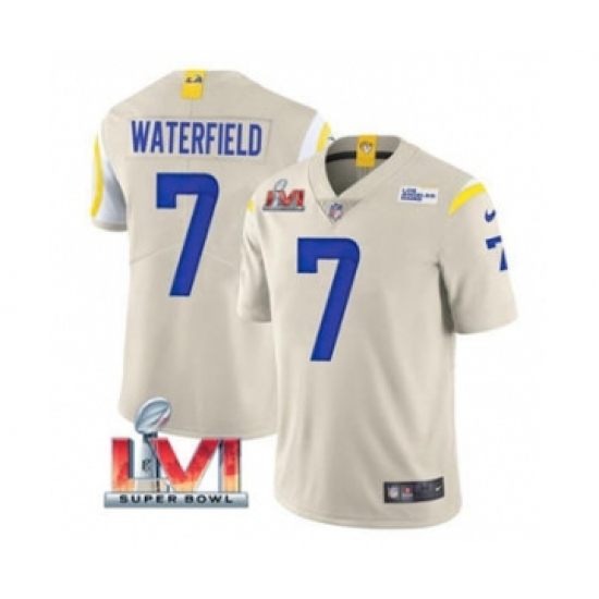 >Men's Los Angeles Rams #7 Bob Waterfield Bone 2022 Super Bowl LVI Vapor Limited Stitched