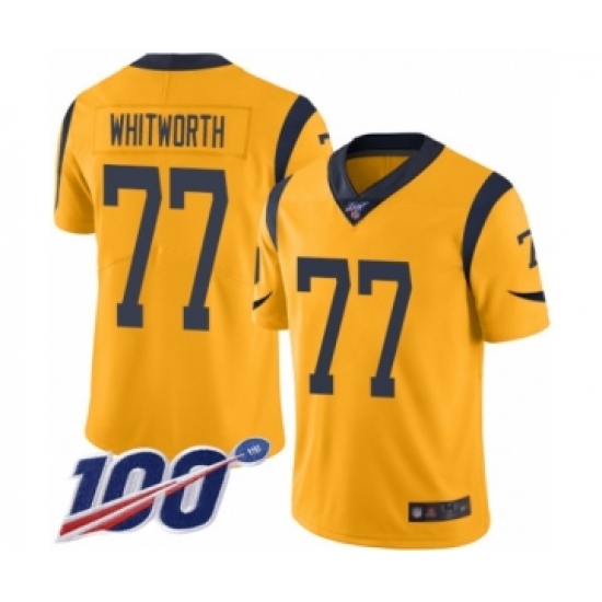 >Men's Los Angeles Rams #77 Andrew Whitworth Limited Gold Rush Vapor Untouchable 100th Season Football Jersey