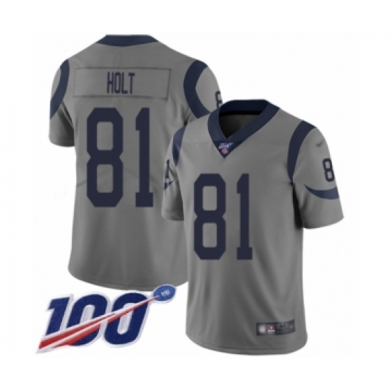 >Men's Los Angeles Rams #81 Torry Holt Limited Gray Inverted Legend 100th Season Football Jersey