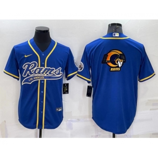 Men's Los Angeles Rams Blue Team Big Logo With Patch Cool Base Stitched Baseball Jersey