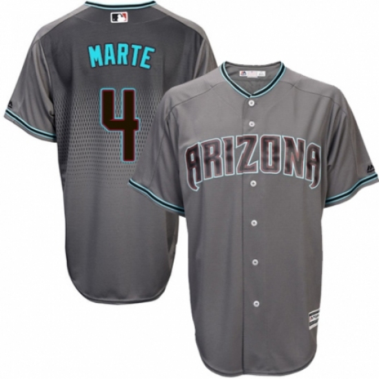 >Men's Majestic Arizona Diamondbacks #4 Ketel Marte Replica Gray/Turquoise Cool Base MLB Jersey