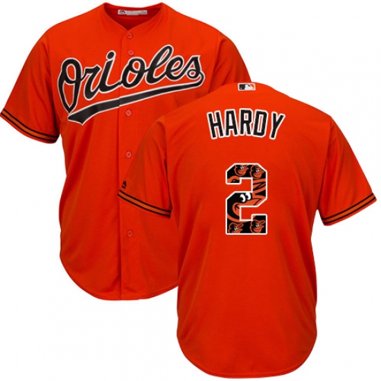 Home>MLB>Baltimore Orioles>J.J. Hardy>Men's Majestic Baltimore Orioles #2 J.J. Hardy Authentic Orange Team Logo Fashion Cool Base MLB Jersey