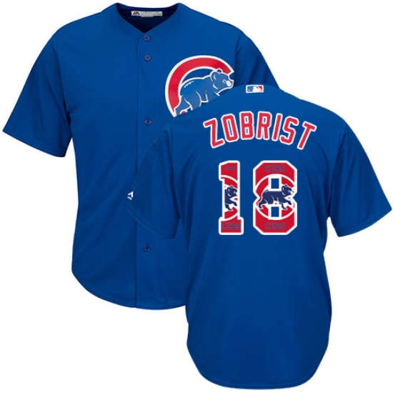 Men's Majestic Chicago Cubs #18 Ben Zobrist Authentic Royal Blue Team Logo Fashion Cool Base MLB Jersey